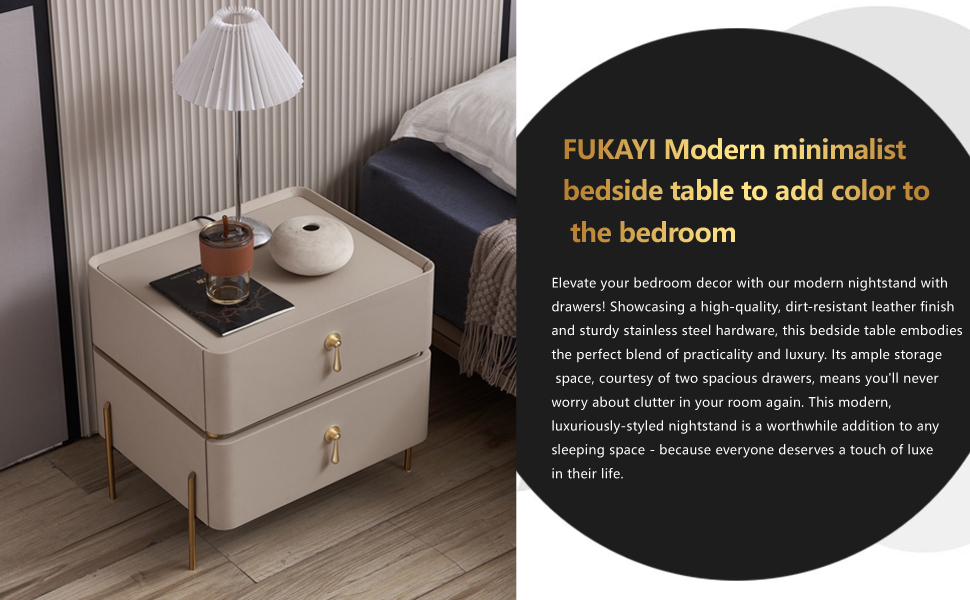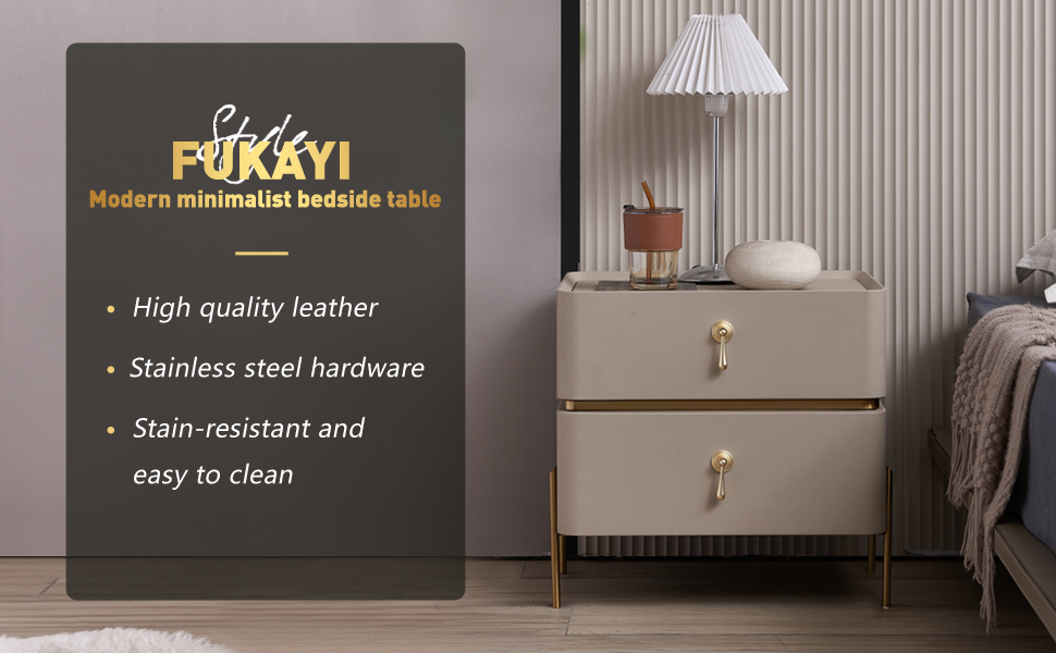 FUKAYI Nightstand, 2 Drawer Dresser for Bedroom,Small Dresser with 2 Drawers, Bedside Furniture & End Table Dresser for Bedroom, Entryway, College Dorm, Metal Frame, Easy Pull Handle